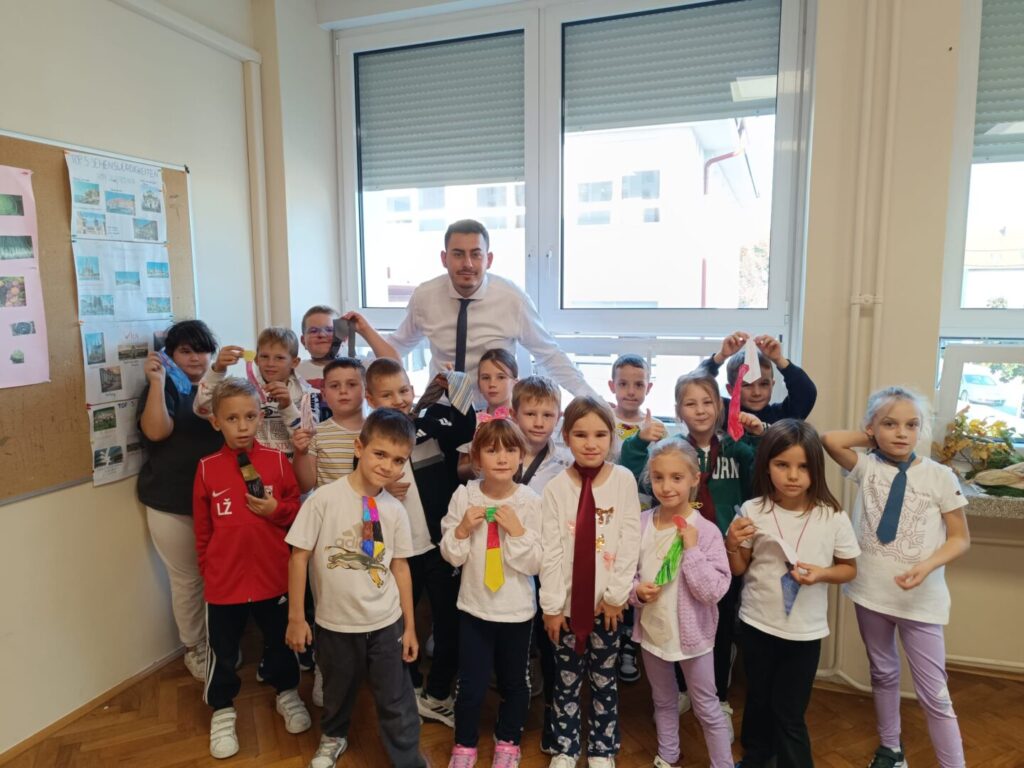 Obilježili smo ga u petak, 17. listopada. Učenici i učitelji na nastavu su došli s kravatama oko vrata i tako udahnuli dašak elegancije u nastavu. Učenici su i naučili zašto je kravata hrvatski simbol te kravatu doživjeli i kroz poticajne aktivnosti.