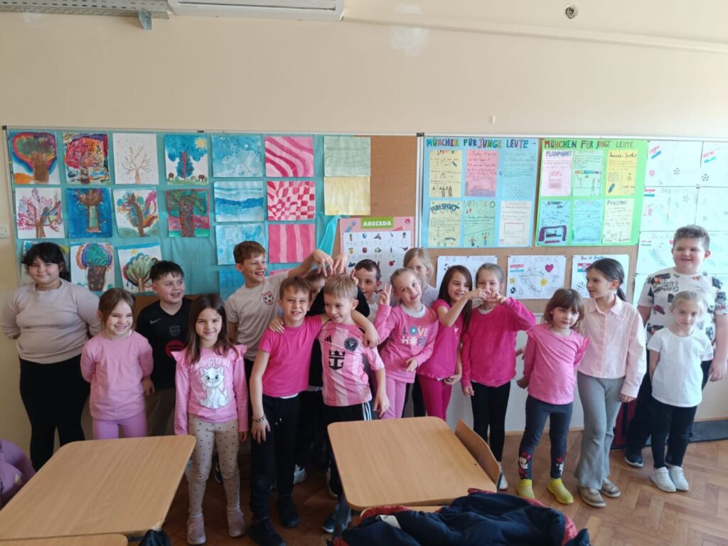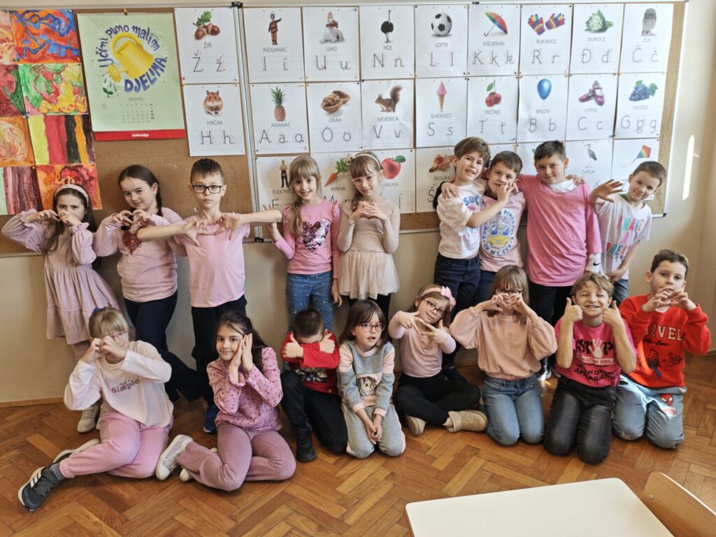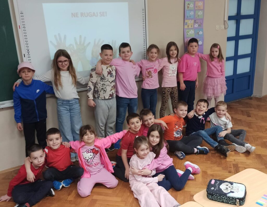 I učenici, učiteljice i učitelj prvih razreda nosili su ružičasto. Već od prvog razreda važno je isticati kako nasilje nije prihvatljivo i nije rješenje. Naučimo biti prijatelji!