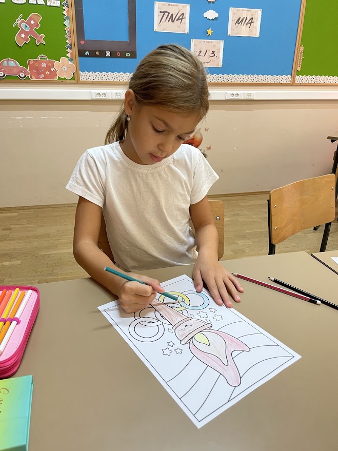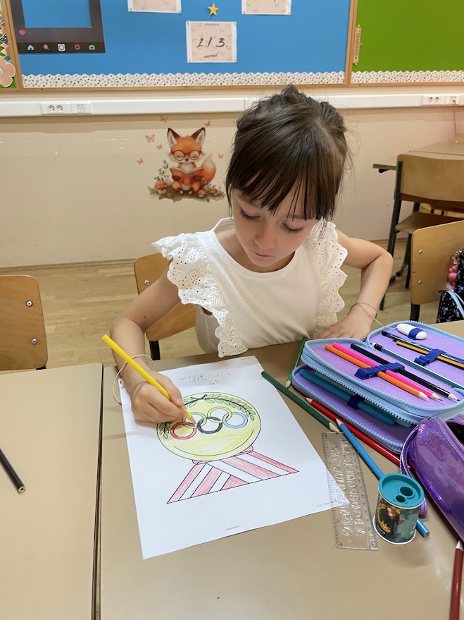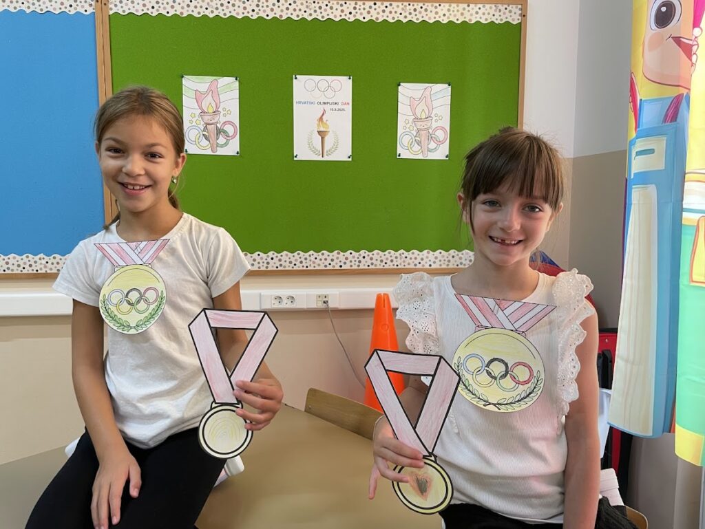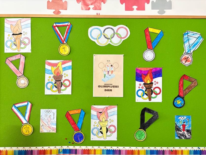 Učenici su došli u školu obučeni u bijele majice, koje simboliziraju prijateljstvo i zajedništvo. Kroz zanimljive aktivnosti naučili smo što svaki krug na olimpijskoj zastavi predstavlja i koje vrijednosti nosi. Također smo crtali olimpijske medalje i olimpijski plamen, podsjećajući se na važnost sporta, poštene igre i zajedništva. Na kraju dana, učenici su se zabavili i rekreirali kroz razne igre s loptama, kolutima i drugim sportskim rekvizitima. Dan je bio ispunjen veseljem, učenjem i igrom, a svi smo uživali u pravom sportskom i prijateljskom duhu.