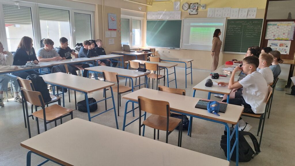 Učenici 8.b i 8.d učili su o ovisnostima kroz debatu. Debata se odvijala na satu biologije uz vodstvo knjižničarke Maje Hunjadi Barišić. Teza debate je bila “Za ovisnost je krivo društvo”. Učenici su podijeljeni u dva tima: afirmacijski i negacijski. Svi učenici trebali su prema uputama pripremiti argumente za svoj tim. Većina učenika je rado sudjelovala i iznosila argumente te smo na drugačiji način govorili o štetnosti ovisnosti i zaključili da je za ovisnost kriv i pojedinac sam, ali i društvo.