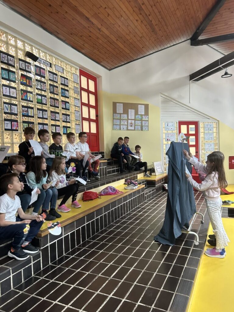 Učenici su se uživljavanjem u uloge upustili u dramski prikaz tekstova vezanim za proljeće i Uskrs. Nakon podjele tekstova sami su izradili štapne lutke i odglumili odabrani tekst.
