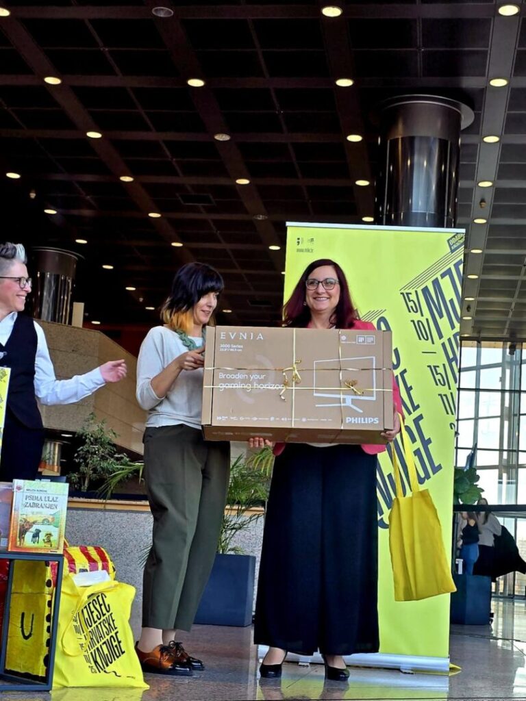 Međutim, za svoj višegodišnji doprinos u promicanju Nacionalnog kviza za poticanje čitanje (zadnje tri godine najviše riješenih kvizova u cijeloj Hrvatskoj, ove godine 222 kviza) knjižničarka je posebno pohvaljena i nagrađena velikim monitorom za računalo (nagradu je osigurao sponzor Microline)!