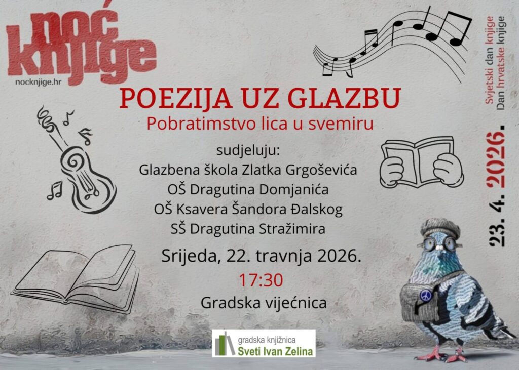 Jučer, 22. travnja, na Dan hrvatske knjige, okupili smo se u Gradskoj vijećnici povodom noći kada knjiga postaje most među ljudima, a riječi prostor susreta, dijaloga i razumijevanja. Manifestacija Noć knjige, koja se tradicionalno održava 23. travnja povodom Svjetskog dana knjige i autorskih prava te Dana hrvatske knjige, već petnaest godina snažno povezuje autore, čitatelje, knjižnice i sve one koji vjeruju u moć pisane riječi. Ove smo godine riječima dodali glazbu i pripremili glazbeno-poetski recital pod nazivom „Pobratimstvo lica u svemiru“. Ovogodišnja tema, nadahnuta istoimenom pjesmom Tina Ujevića, poziva nas da zastanemo i promislimo o dubokoj, gotovo kozmičkoj povezanosti među ljudima. U vremenu koje često obilježavaju podjele i nesigurnosti, ova nas tema podsjeća na vrijednosti mira, zajedništva, empatije i dijaloga – temeljima ne samo književnosti, nego i svakog zdravog društva.