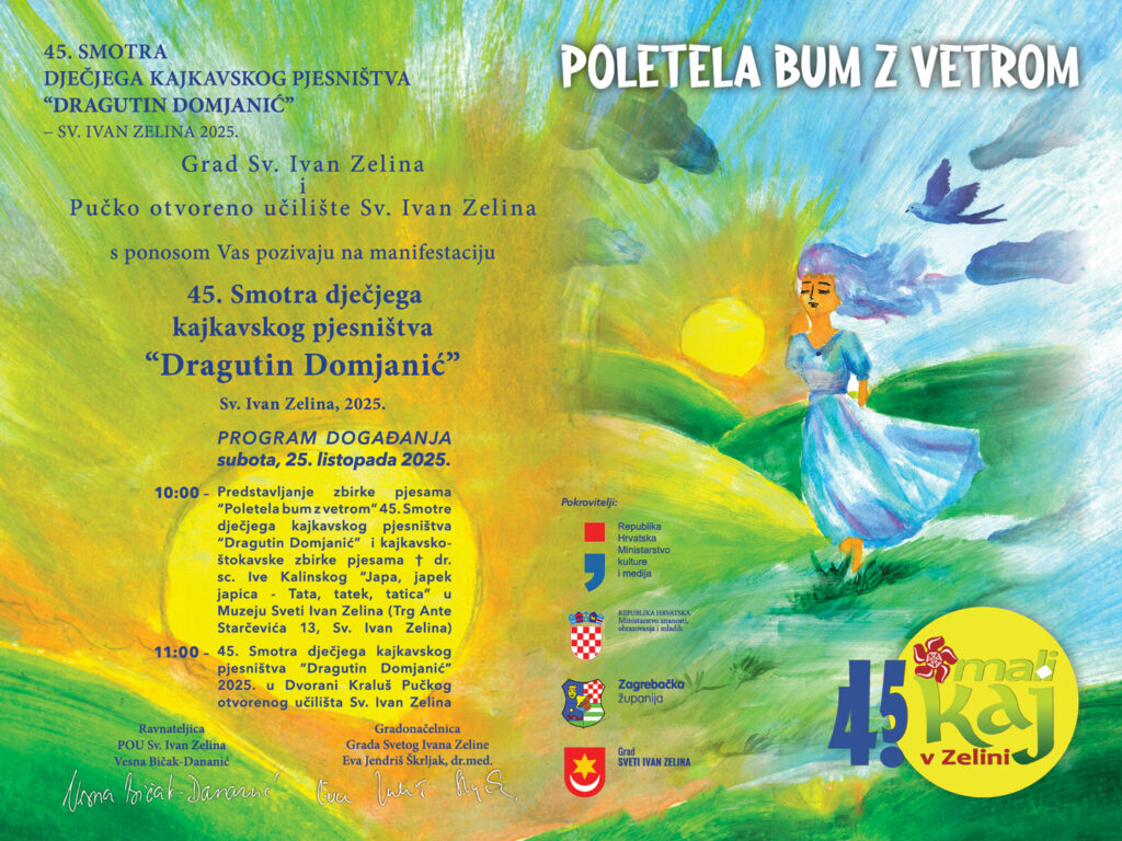 Program započinje u 10 sati predstavljanjem ovogodišnje zbirke pjesama “Poletela bum z vetrom” i kajkavsko-štokavske zbirke pjesama “Japa, japek, japica – Tata, tatek, tatica” dr. sc. Ive Kalinskog u Muzeju Sveti Ivan Zelina (Trg Ante Starčevića 13).