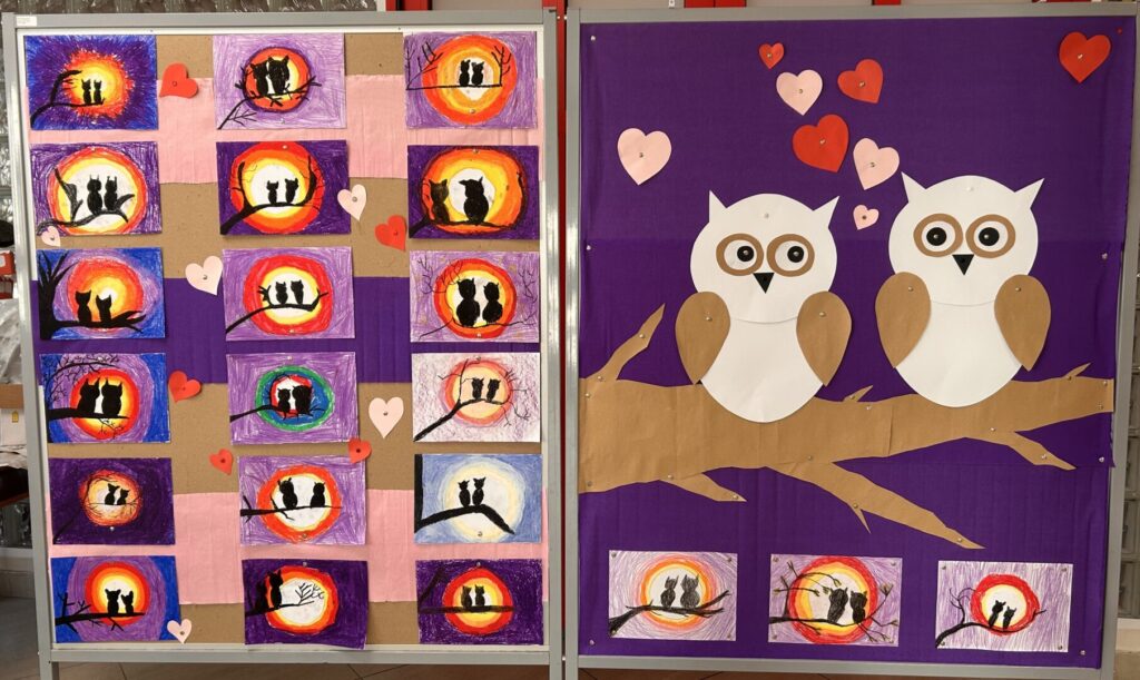 Kroz likovne radove učenici su ponovno pokazali svoju kreativnost i osjećaj za ljepotu među kojima su zablistale dvije zaljubljene sove. Ovaj nježni motiv govori o bliskosti, razumijevanju i radosti koju dijelimo s drugima. Ponosni smo na trud naših učenika.
