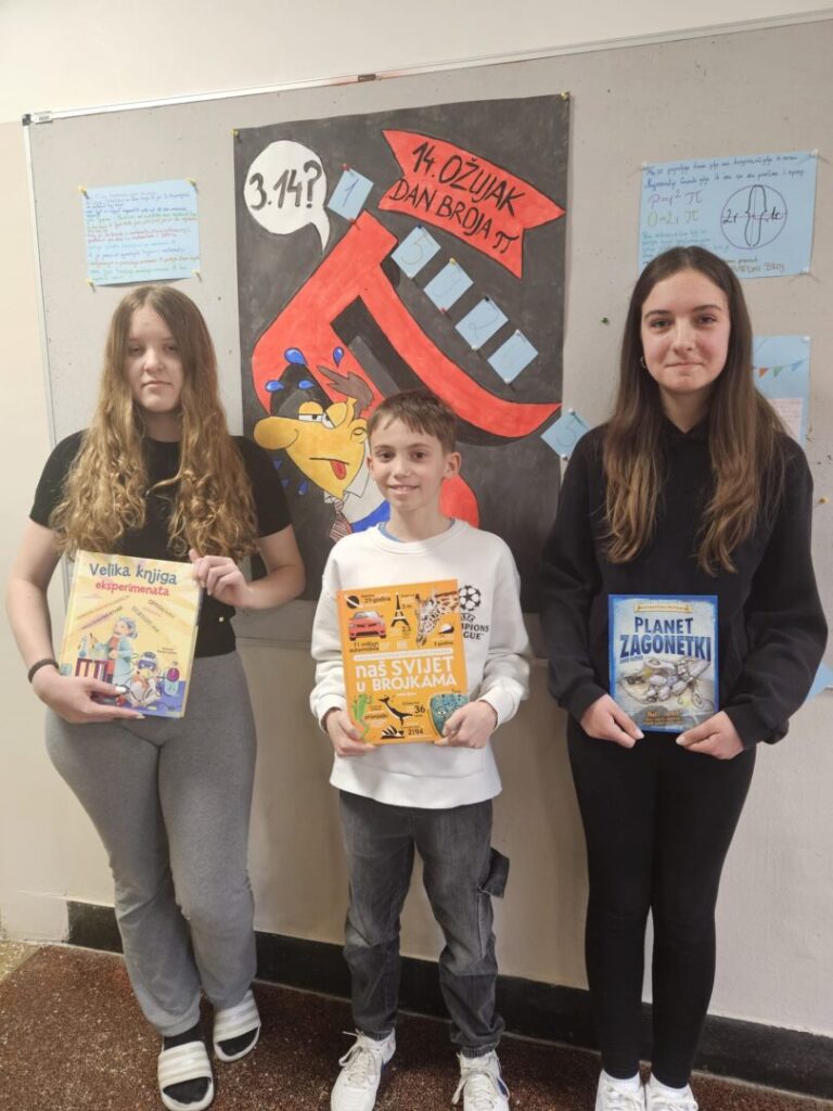 Prvo mjesto osvojio je Jakov Gorički, izrecitiravši čak 236 decimala broja π. Drugo mjesto pripalo je Mirti Marinković, a treće Rei Hazulin.