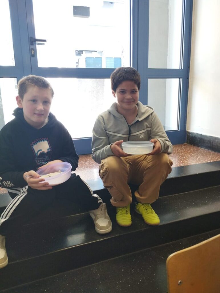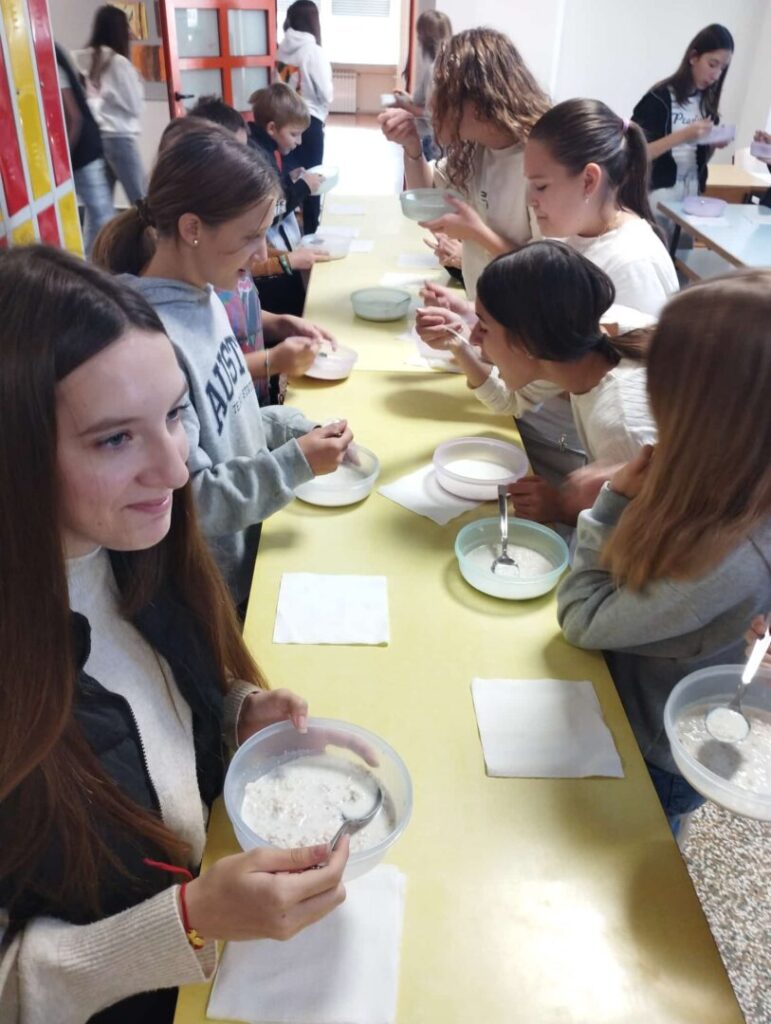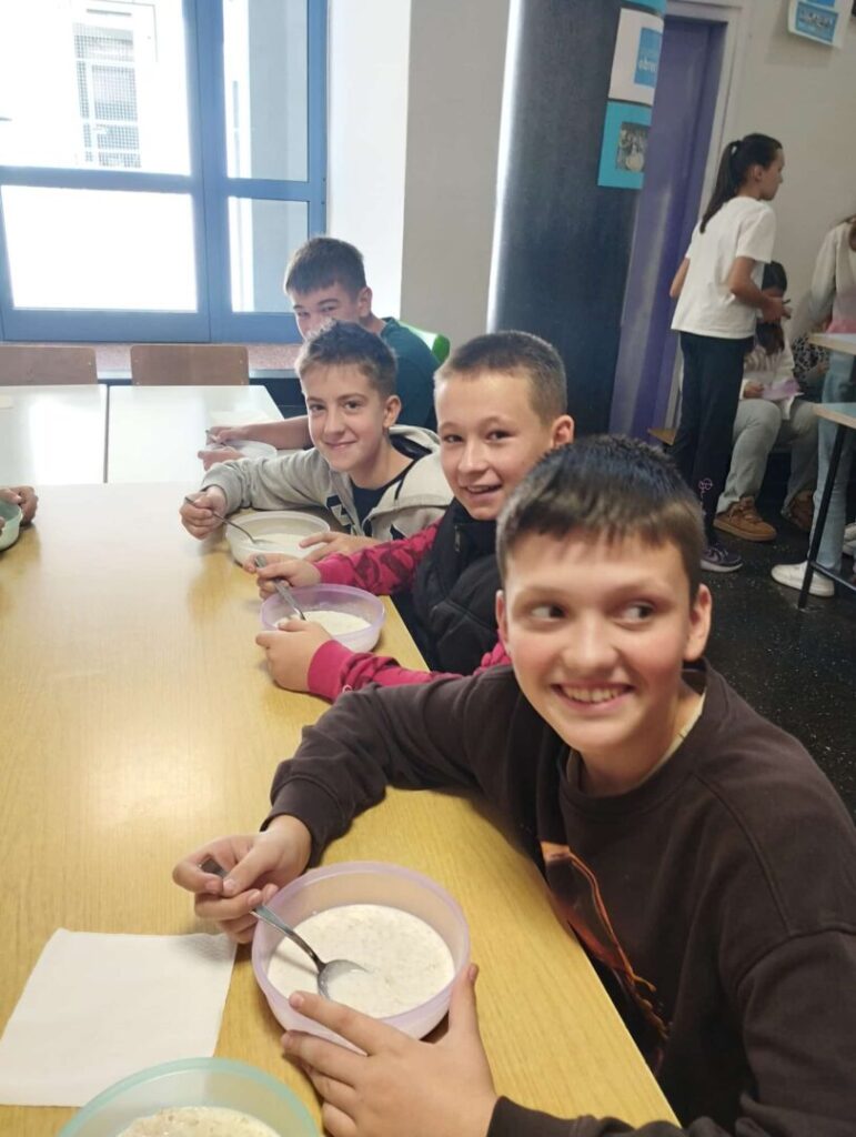 Potaknuti stvarnostima koje nam prenosite odlučili smo, kao škola, na Svjetski dan hrane, 16.10., u školskoj kuhinji ponuditi djeci obrok najsličniji Marijinom obroku. Naše tete kuharice drage volje pripremile su ukusnu kašu, otprilike onakvu kakvu jedu djeca diljem svijeta u školama gdje hranu osigurava organizacija Marijini obroci. Bilo je svakakvih komentara – od onih: „pa ovo je baš fino“, do onih: “kako se ovoga možemo najesti“, ali sve skupa proteklo je u pozitivnom ozračju širenja spoznaja, upoznavanja i poštivanja drugačijega i, najvažnije, promišljali smo i djelovali prema drugome i za drugoga jer djelotvorna ljubav najjača je ljubav.